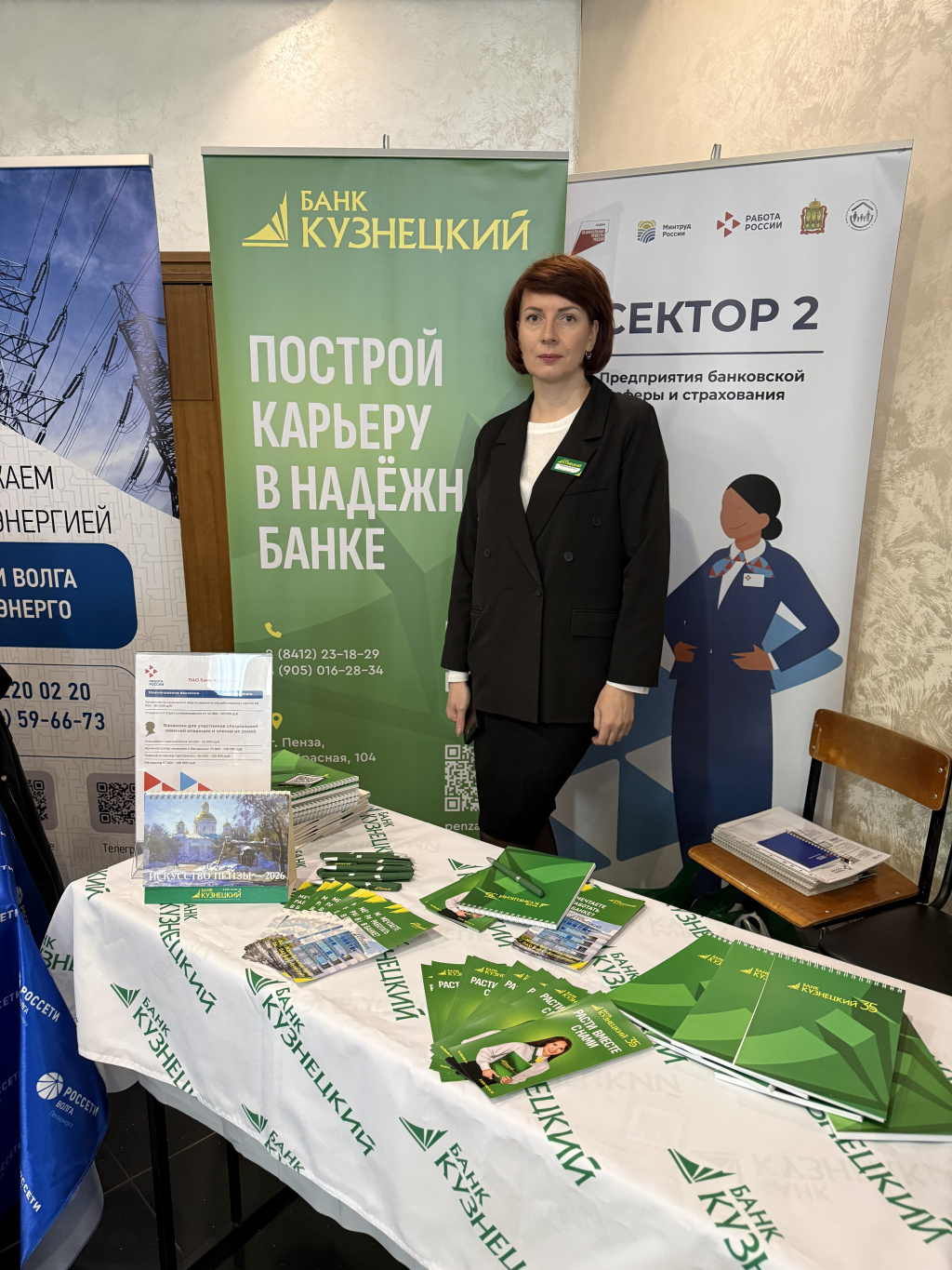 17 апреля 2026 года Банк «Кузнецкий» принял участие в региональном этапе Всероссийской ярмарки трудоустройства «Работа России. Время возможностей». Мероприятие, организованное Министерством труда, социальной защиты и демографии региона при поддержке Правительства Пензенской области, объединило в одном пространстве более 70 ведущих работодателей, а общее число гостей превысило 4 тысячи человек. С 2025 года ярмарка проводится в рамках реализации национального проекта «Кадры», инициированного Президентом РФ.