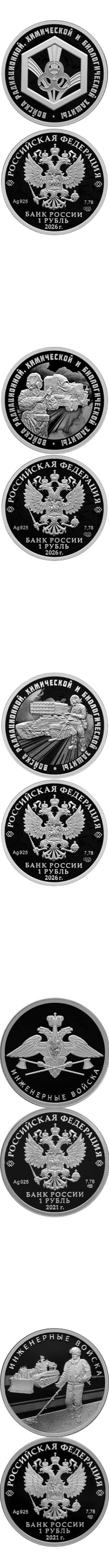Серебряная монета номиналом «1 РУБЛЬ» серии «Вооруженные силы Российской Федерации» (масса драгоценного металла в чистоте 7,78 г, проба сплава серебро 925/1000, каталожный №5109-0131), имеет форму круга диаметром 25,00 мм.