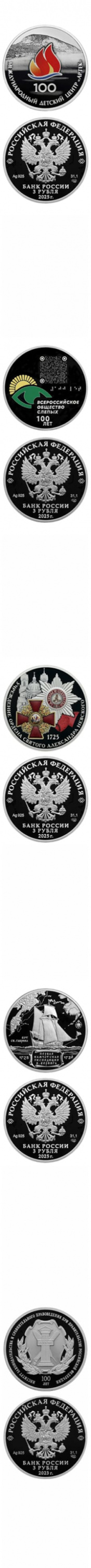 Аверс: рельефное изображение Государственного герба Российской Федерации, над ним вдоль канта – надпись полукругом «РОССИЙСКАЯ ФЕДЕРАЦИЯ», обрамленная с обеих сторон сдвоенными ромбами, под гербом слева – обозначения драгоценного металла и пробы сплава, справа – содержание химически чистого металла и товарный знак монетного двора, внизу в центре в три строки – надпись «БАНК РОССИИ», номинал монеты «3 РУБЛЯ», год выпуска «2025 г.».