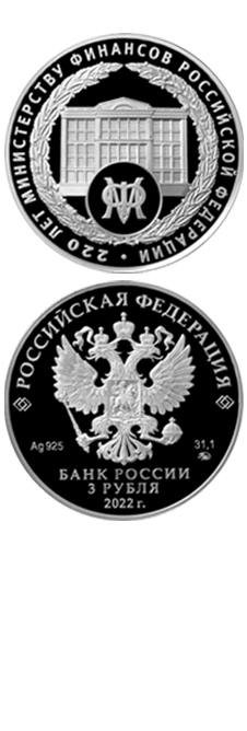 Серебряная монета «220-летие образования Министерства финансов Российской Федерации»